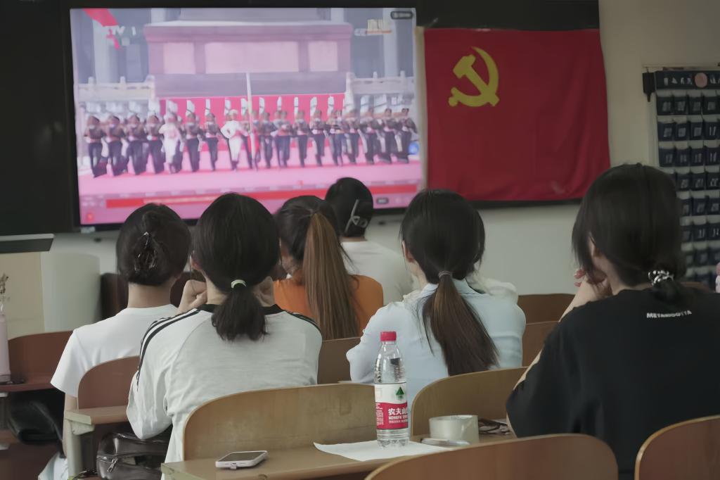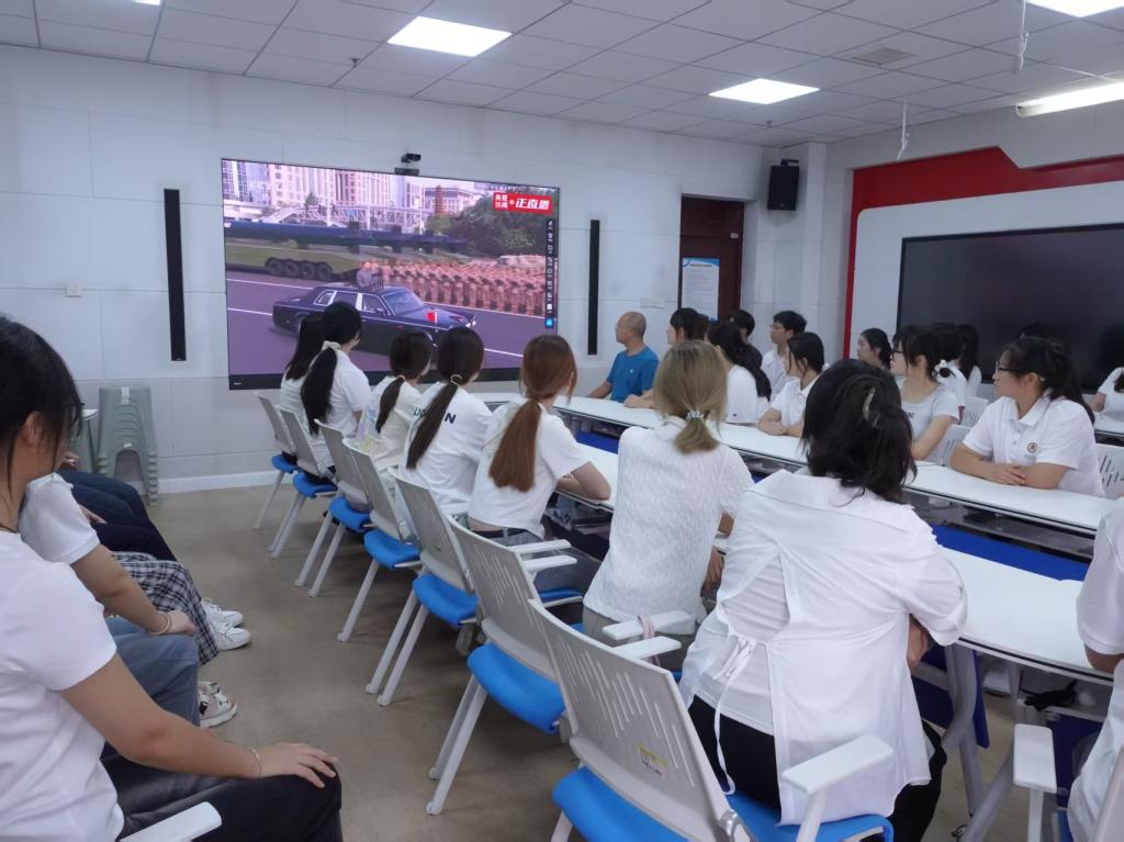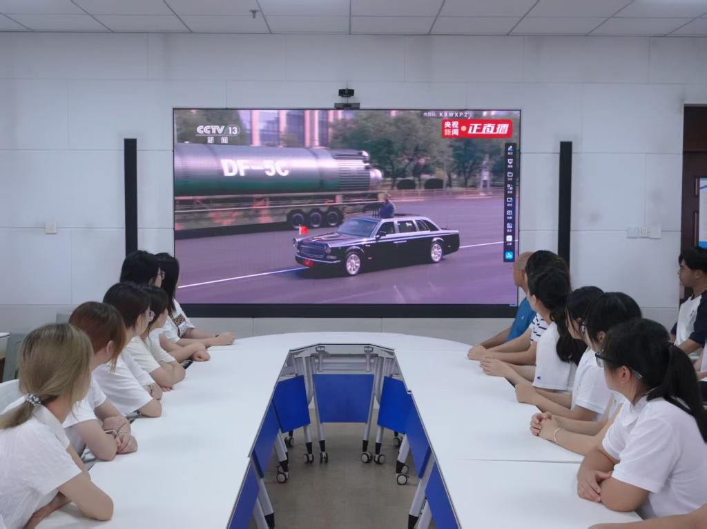 9月3日,纪念中国人民抗日战争暨世界反法西斯战争胜利80周年阅兵仪式在北京隆重举行。当日上午,传媒学院组织各党支部、各班级集中观看阅兵仪式直播。