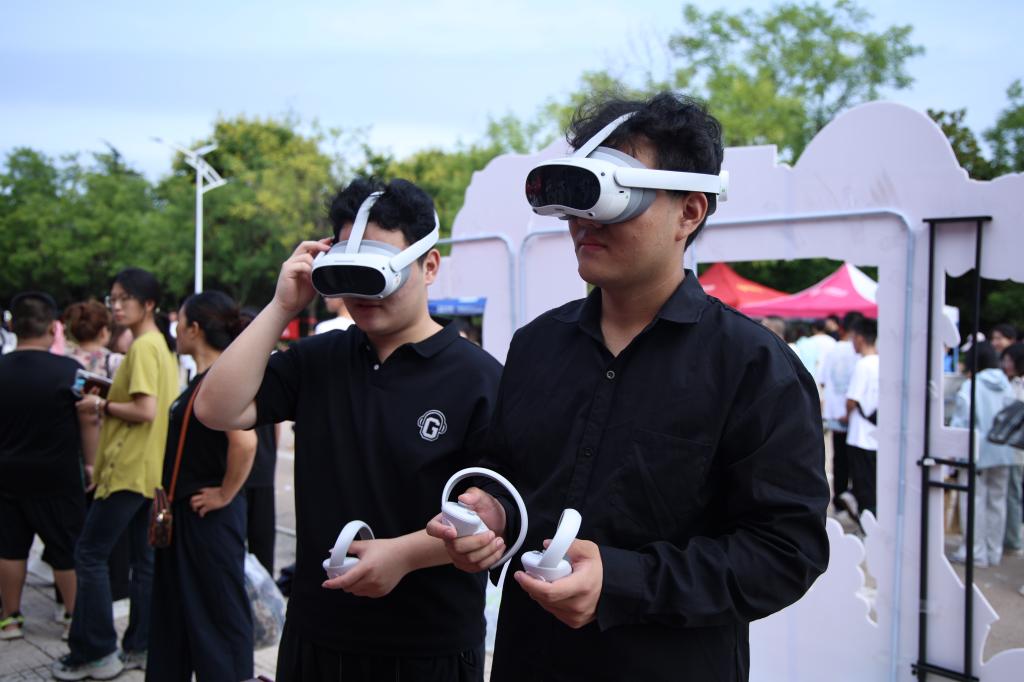 传媒学院迎新大本营化身为科技体验前沿阵地,“VR虚拟游园体验区”引来众多新生驻足。新生佩戴专业VR设备,一览校园美景,充分体现了学院特色设备,展现了传媒学院的硬核实力。