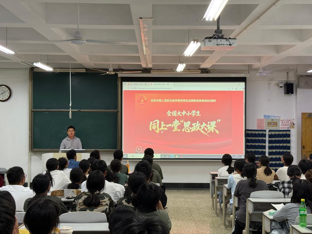 为纪念中国人民抗日战争暨世界反法西斯胜利80周年,引导学生厚植家国情怀,9月18日晚,全体传媒学子在各班辅导员的带领下,线上观看了人民网独家直播的“全国大中小学生同上一堂思政大课”大学篇《大国担当》。