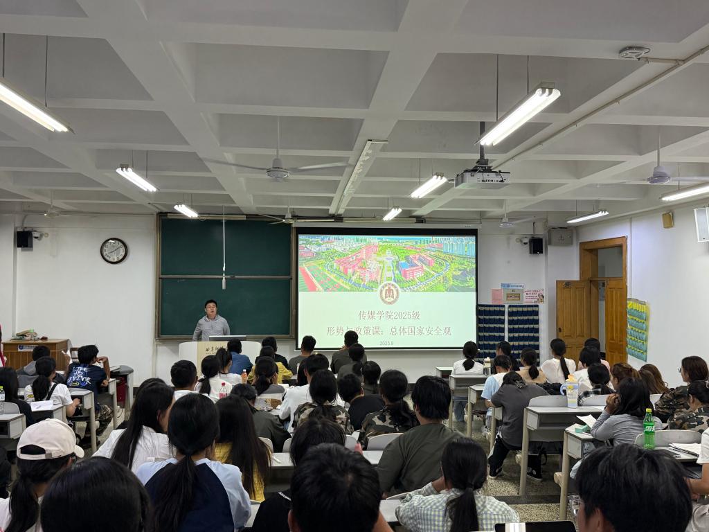 为深入贯彻落实总体国家安全观,增强新生国家安全意识,9月17日晚,传媒学院组织开展“形势与政策课:总体国家安全观”主题班会。传媒学院2025级辅导员张洪孟担任班会主讲人,2025级全体本科新生参与此次班会。