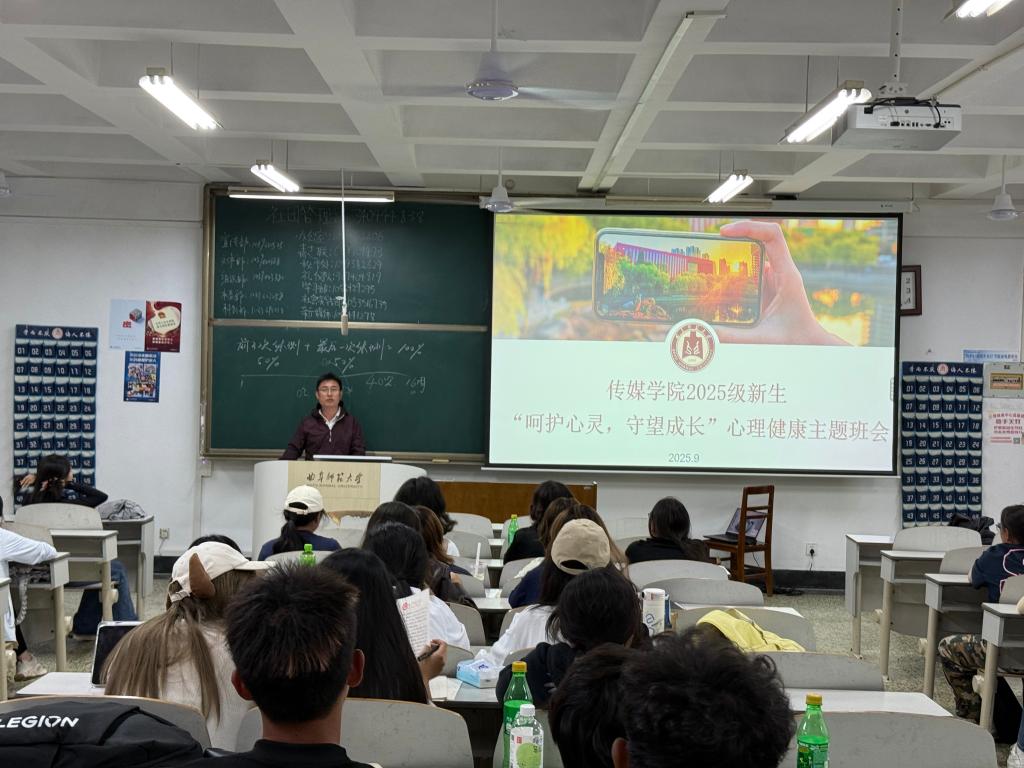 为落实2025级新生心理健康教育工作,引导其树立积极向上的心态,9月18日晚,传媒学院组织开展“呵护心灵,守望成长”心理健康主题班会,辅导员张洪孟担任主讲人,2025级全体新生参与。
